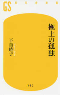 | 目次 | 第1章 なぜ私は孤独を好むのか(なぜ誰もが「孤独」を嫌うのか;サイのように孤高に生きたい ほか) 第2章 極上の孤独を味わう(子供時代はいつも一人;他人に合わせるくらいなら孤独を選ぶ ほか) 第3章 中年からの孤独をどう過ごすか(一人の時間を大切にすると夢がかなう;孤独上手は中年から本領を発揮する ほか) 第4章 孤独と品性は切り離せない(年をとると品性が顔に出る;孤独を知る人は美しい ほか) 第5章 孤独の中で自分を知る(絶望したからこそ得られること;親の死後の孤独は格別 ほか) |