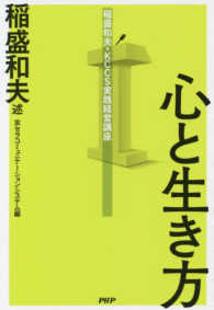 | 目次 | 第1章 生命を育む(挨拶から始めよう;泣く子に負けない;子どもの機嫌を取らない ほか) 第2章 マナーを育む(よい叱り方、悪い叱り方;お辞儀をする;手伝いをさせよう ほか) 第3章 人間性を育む(約束は必ず守る;悪口は言わない;差別をしない ほか) 第4章 学校とのつきあい(教育と先生;けんかのルールを身につける;いじめをしない子に育てる ほか) 第5章 ティーンエイジャーの子どもと(ボランティアから学ぶ;ホームステイのすすめ;子どもの友人との出会い ほか) 第6章 情報といかに接するか(好きな本を読ませる;新聞、雑誌を読む;情報機器とのつきあい ほか) 第7章 成熟した親子関係をつくる(パラサイトシングルにしないために;挫折を忍耐強く見守る;子どもが結婚するとき ほか) |
